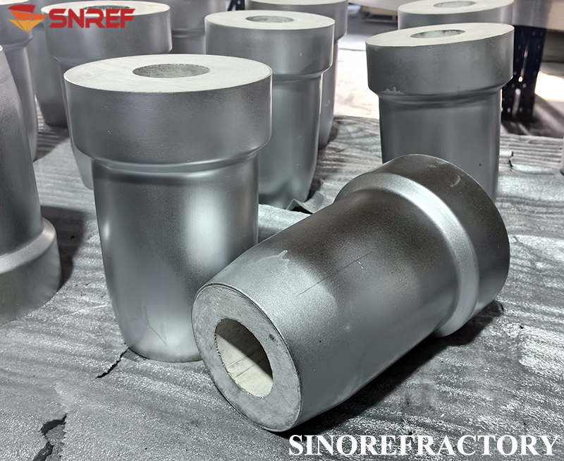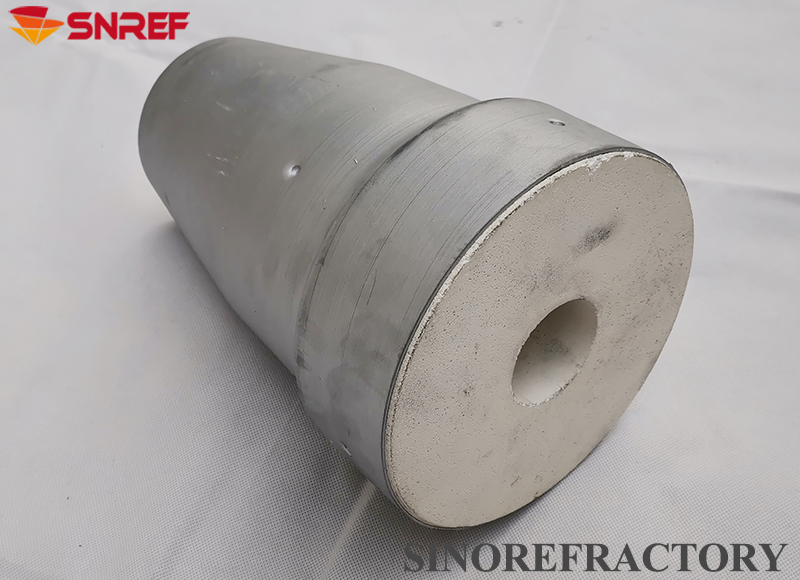 Adopting tabular corundum, white corundum, mullite as main materials.Choosing good anti-oxidation flake graphite as carbon source, adding aluminum metal powder, silicon metal powder and other additives to increase high temperature performance.Using phenolic resin as bonding which obtains high solid content and high carbon residue. Integrated with steel can to forming or shaping separately under high temperature.