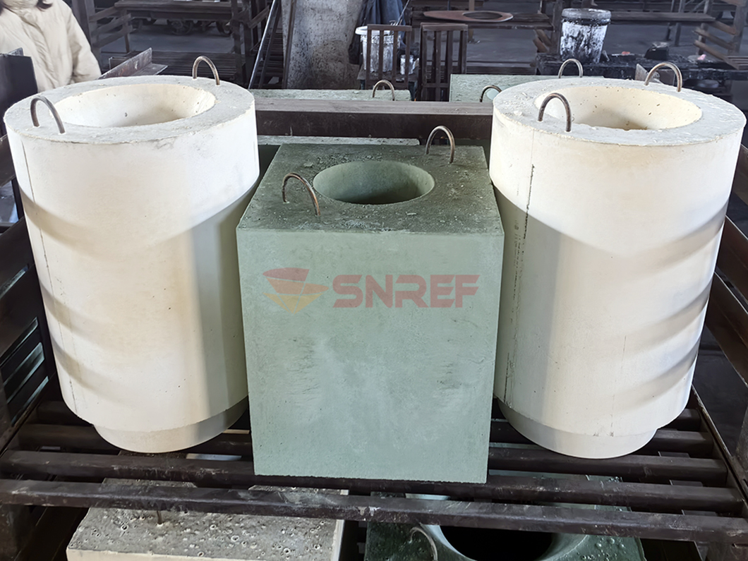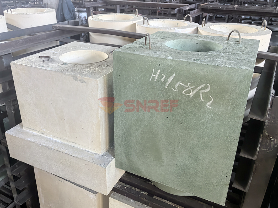 Adopting tabular corundum, white corundum, mullite as main materials. Choosing good anti oxidation flake graphite as carbon source, adding aluminum metal powder, silicon metal powder and other additives to increase high temperature performance. Using phenolic resin as bonding which obtains high solid content and high carbon residue. Integrated with steel can to forming or shaping separately under high temperature.